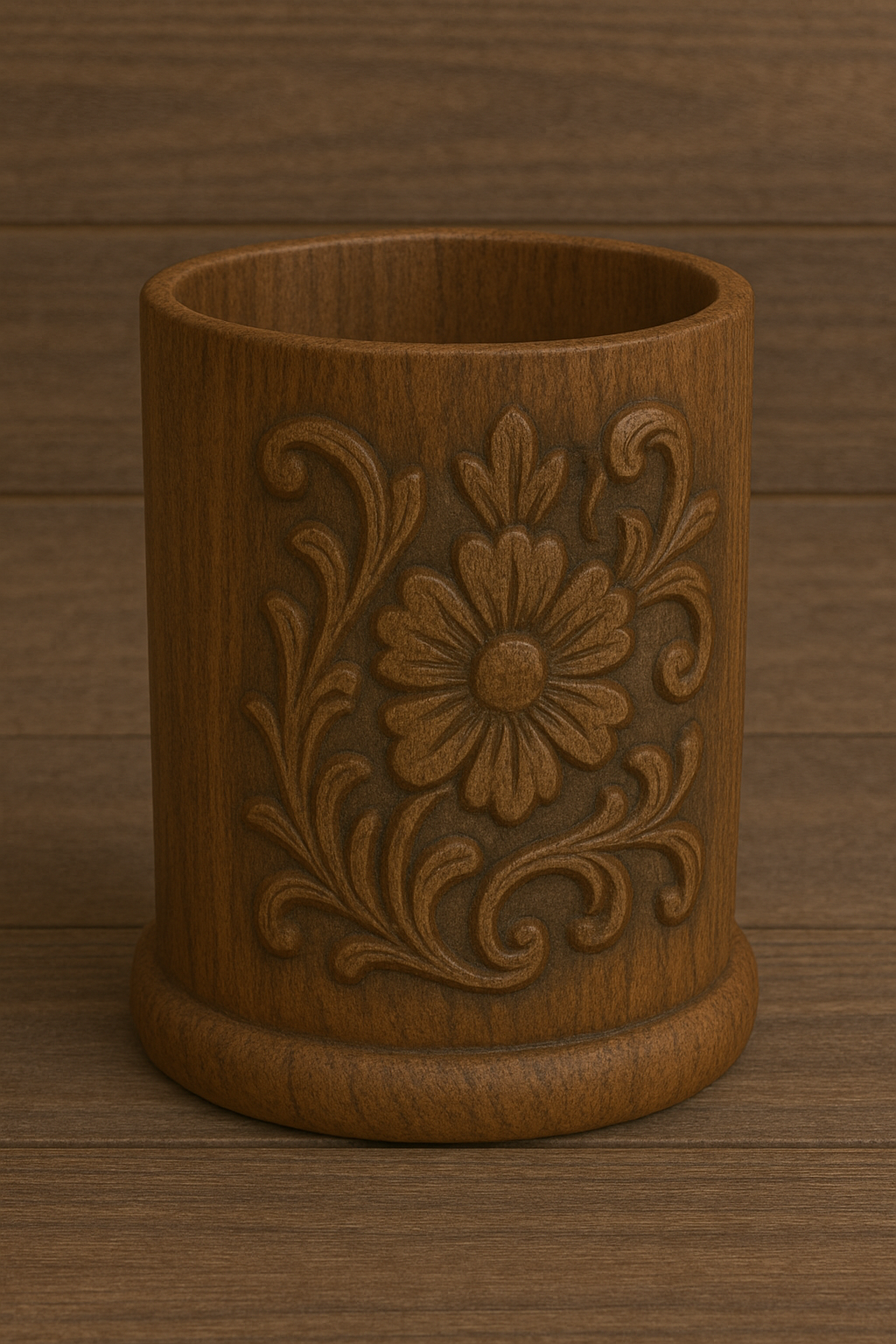 Tidy your kitchen with handmade flair — this carved holder keeps your cooking tools upright and in style.